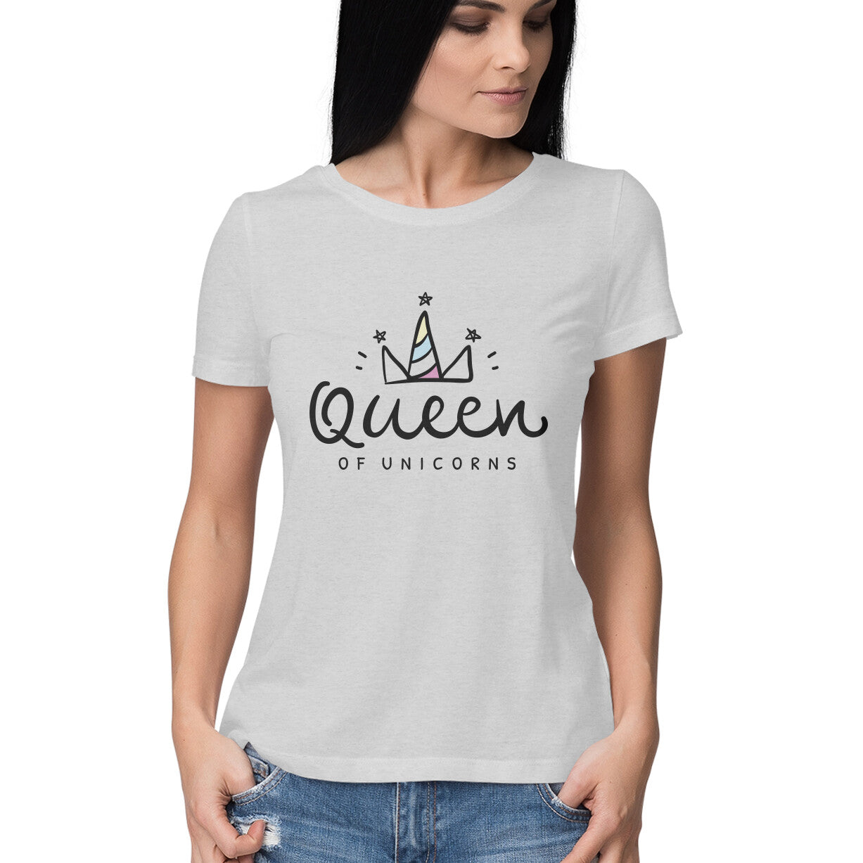 Women's Round-neck Half Sleeves Cotton T-shirt - Queen Of Unicorns